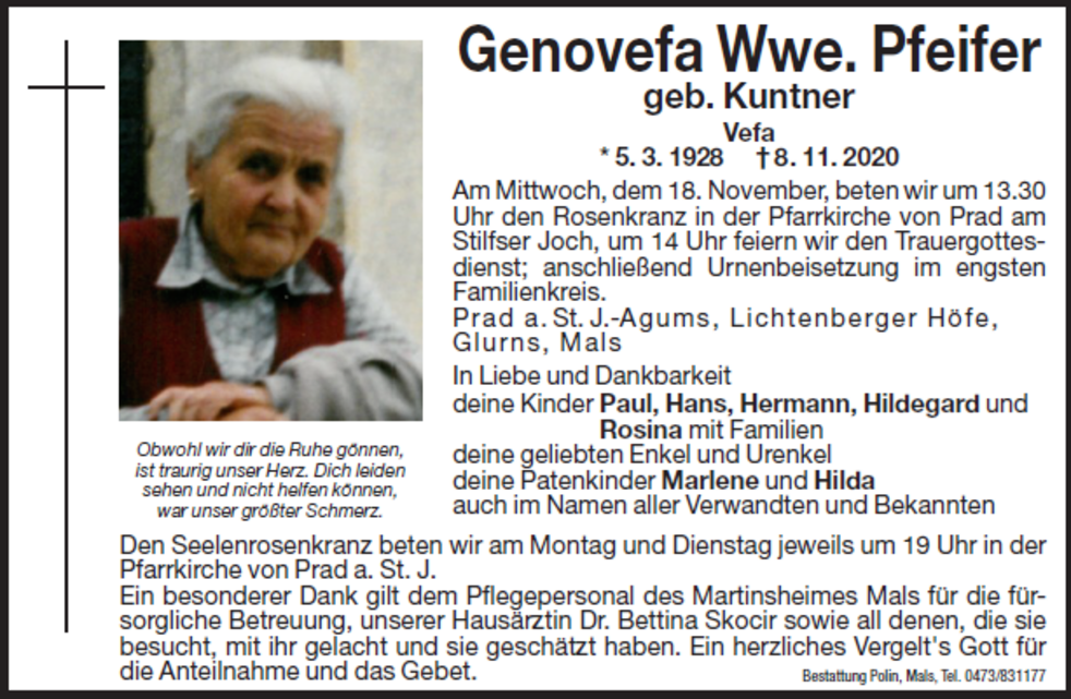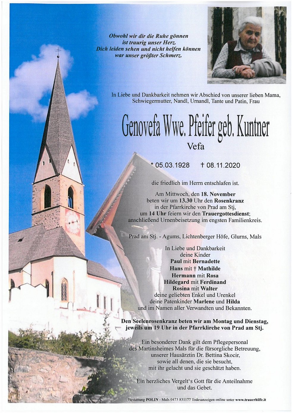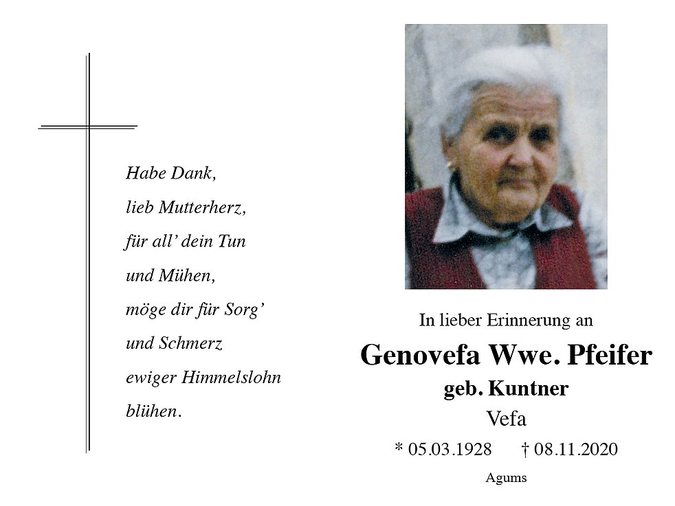 Genovefa Wwe. Pfeifer geb. Kuntner