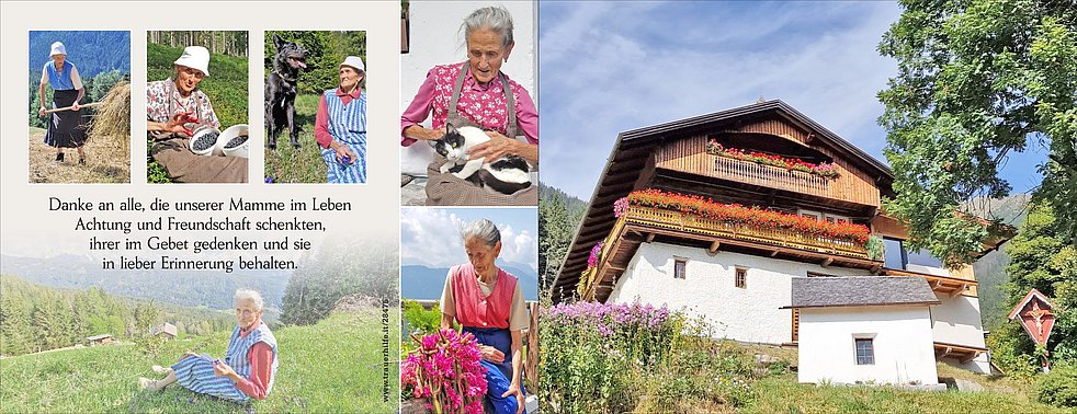 Ein Dank gilt den Ärzten und dem Pflegepersonal der Abteilung Medizin am Krankenhaus Innichen. Vergelt’s Gott allen, die an den Seelenrosenkränzen und an der Trauerfeier von unserer lieben Mamme teilnehmen.