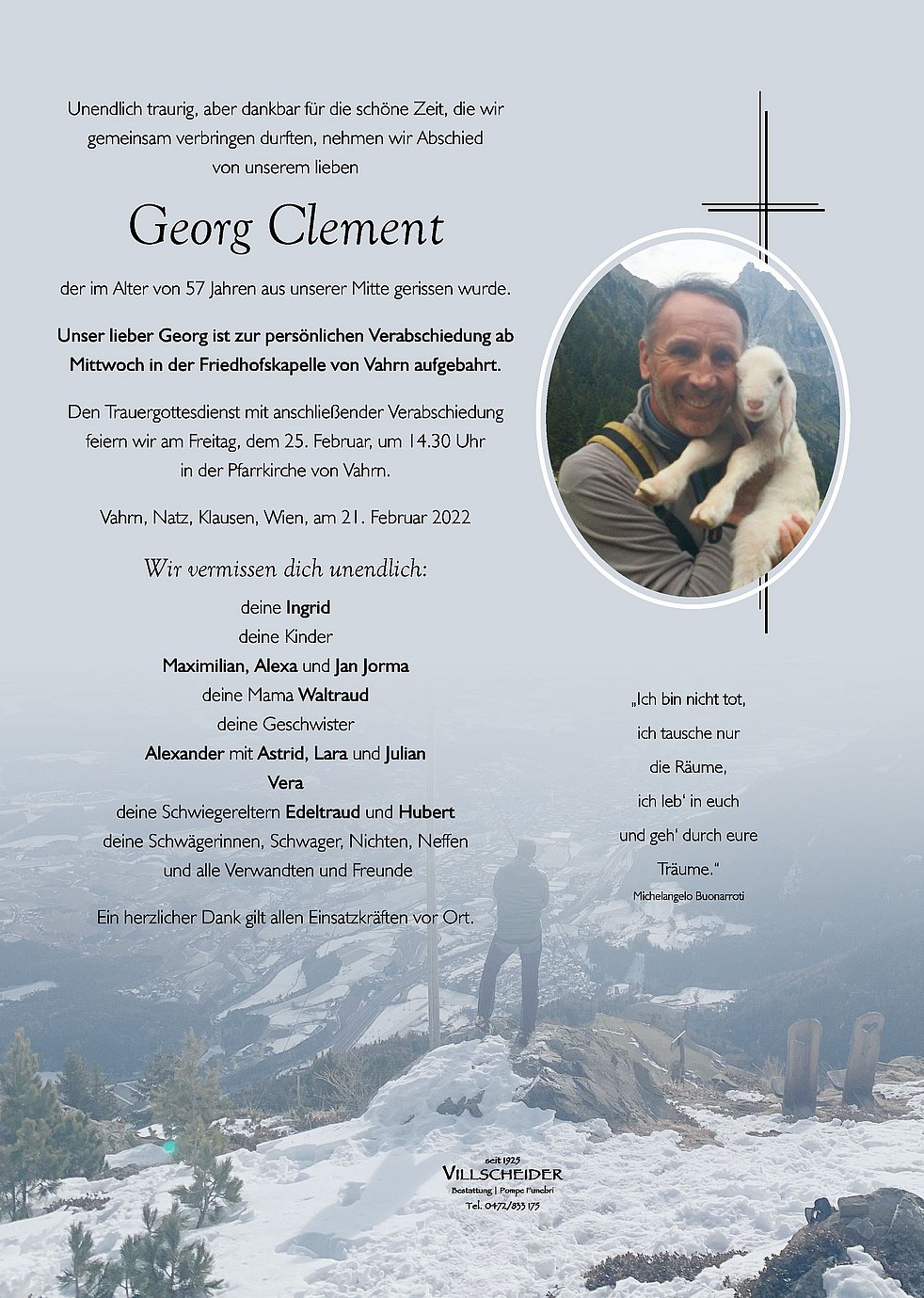 Viel Kraft in dieser schweren Zeit, aufrichtes Beileid, Familie Weitlaner Innichen