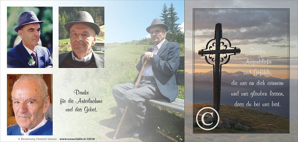 Ein herzliches Vergelt‘s Gott gilt dem Hausarzt Dr. Martin Vieider und dem gesamten Team vom Wohn- und Pflegeheim Olang für die liebevolle Begleitung und Betreuung.