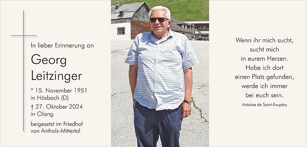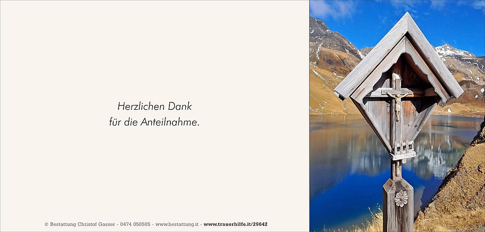 Unser lieber Verstorbene ist zur persönlichen Verabschiedung ab Montagnachmittag bis Mittwochmittag in der Friedhofskapelle von Antholz-Mittertal aufgebahrt.