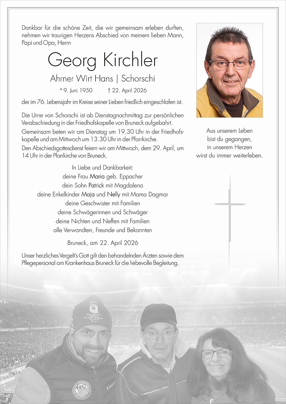 Den Abschiedsgottesdienst feiern wir am Mittwoch, dem 29. April, um 14 Uhr in der Pfarrkirche von Bruneck.