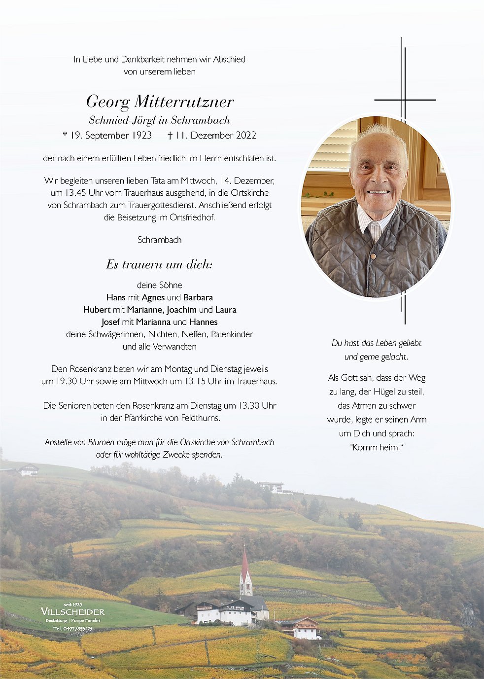 Begräbnisgottesdienst: 14.12. - 14:00 Uhr Schrambach