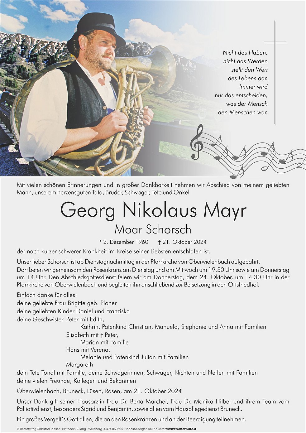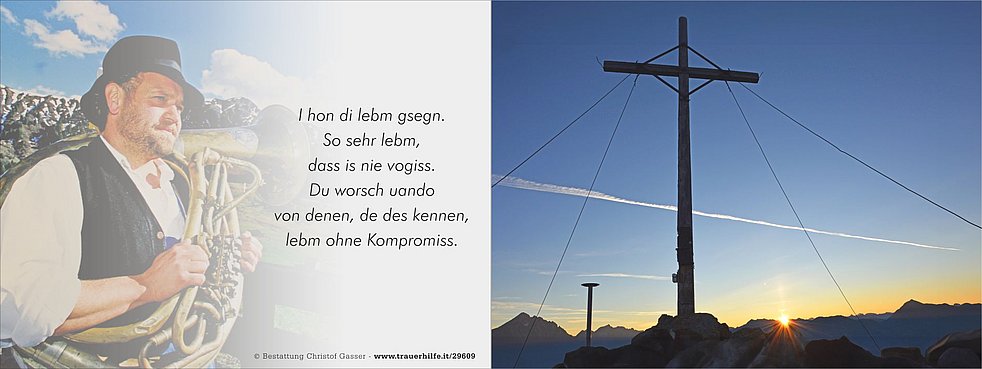 Unser Dank gilt seiner Hausärztin Frau Dr. Berta Marcher, Frau Dr. Monika Hilber und ihrem Team vom Palliativdienst, besonders Sigrid und Benjamin, sowie allen vom Hauspflegedienst Bruneck.