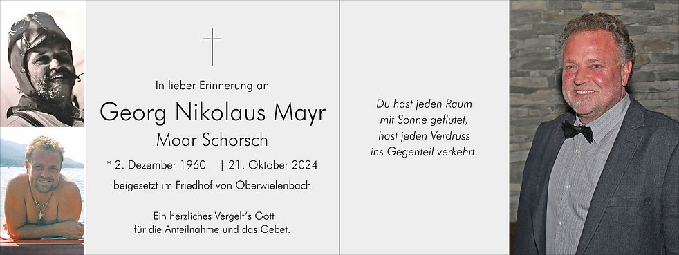 Dort beten wir gemeinsam den Rosenkranz am Dienstag und am Mittwoch um 19.30 Uhr sowie am Donnerstag um 14 Uhr. Den Abschiedsgottesdienst feiern wir am Donnerstag, dem 24. Oktober, um 14.30 Uhr in der Pfarrkirche von Oberwielenbach und begleiten ihn anschließend zur Beisetzung in den Ortsfriedhof.