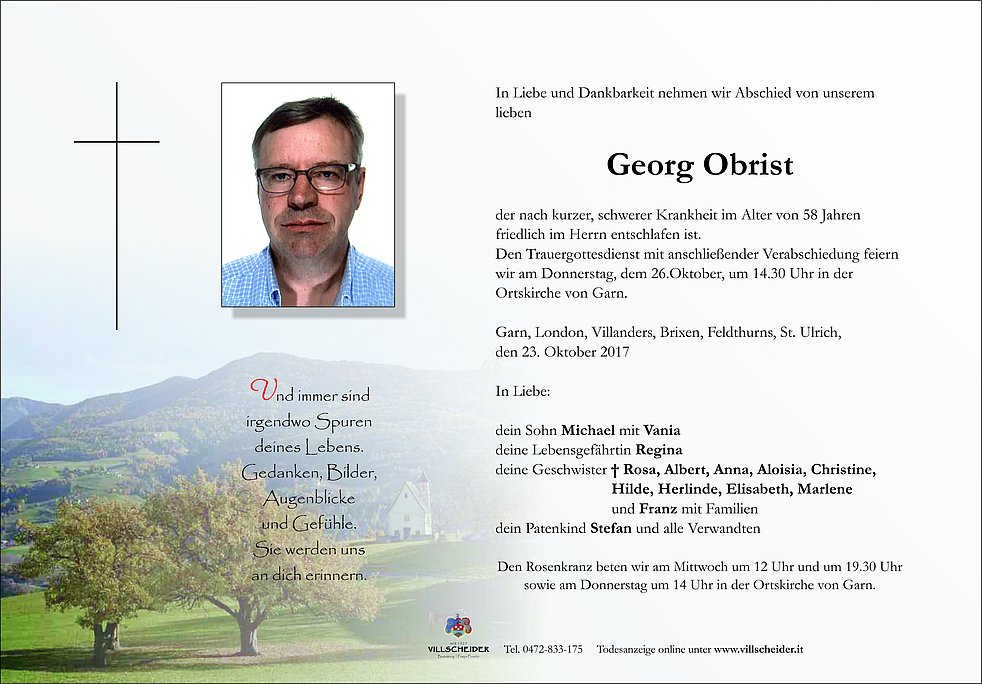 Den Trauergottesdienst mit anschließender Verabschiedung feiern wir am Donnerstag, dem 26.Oktober, um 14.30 Uhr in der Ortskirche von Garn.