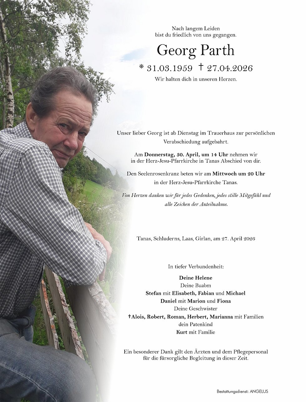 "Eine Stimme, die vertraut war, schweigt, ein Mensch, der immer da war, ist nicht mehr. Was bleibt, sind dankbare Erinnerungen, die niemand nehmen kann."