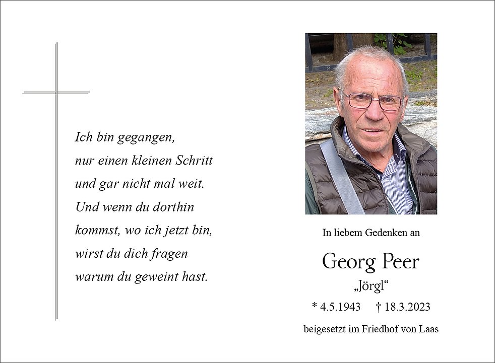 14 Uhr feiern wir den Begräbnisgottesdienst mit anschließender Verabschiedung in der Pfarrkirche von Laas.