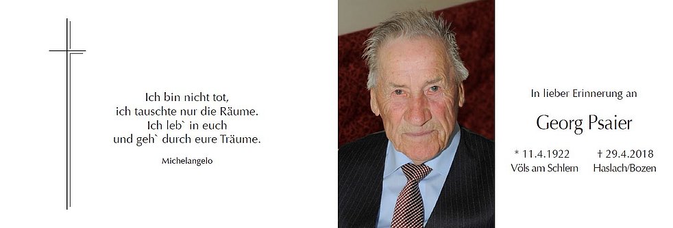 Den Trauergottesdienst mit anschlieβender Einsegnung feiern wir am Freitag, dem 4. Mai, um 14.30 Uhr in der St. Gertraud-Kirche in Haslach.