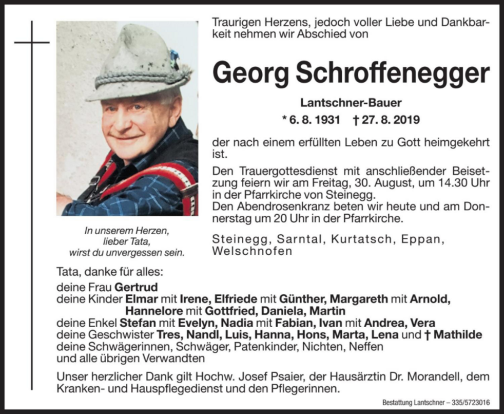am Freitag, 30. August, um 14.30 Uhr in der Pfarrkirche von Steinegg.
