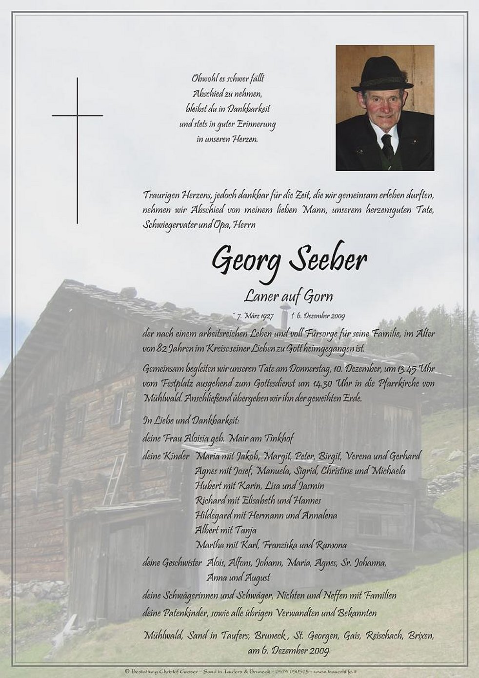 der nach einem arbeitsreichen Leben und voll Fürsorge für seine Familie, im Alter von 82 Jahren im Kreise seiner Lieben zu Gott heimgegangen ist.
