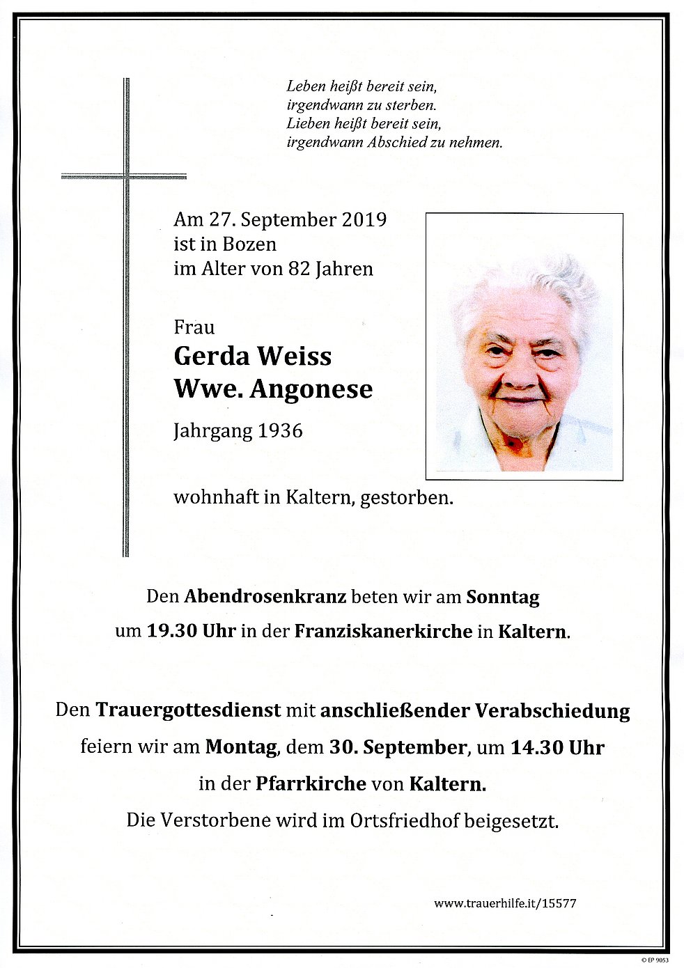 Den Trauergottesdienst mit anschließender Verabschiedung feiern wir am Montag, dem 30. September um 14.30 Uhr in der Pfarrkirche von Kaltern.