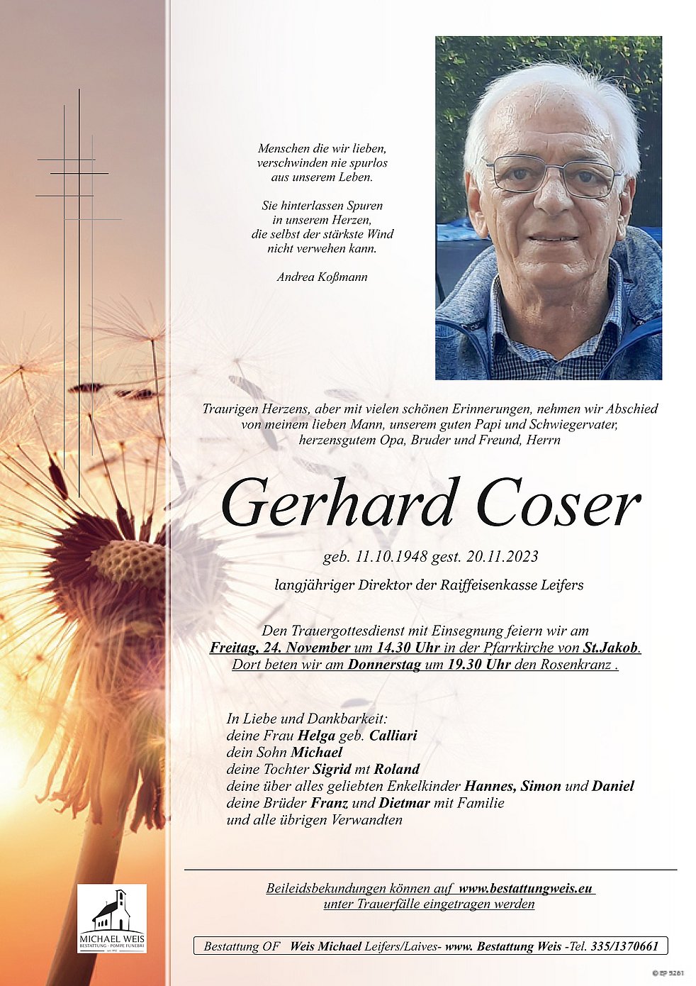 Allzu schön waren die Jahre, die wir gemeinsam verbringen durften. Wir werden Gerhard in bester Erinnerung behalten. Ruhe in Frieden, lieber Gerhard!