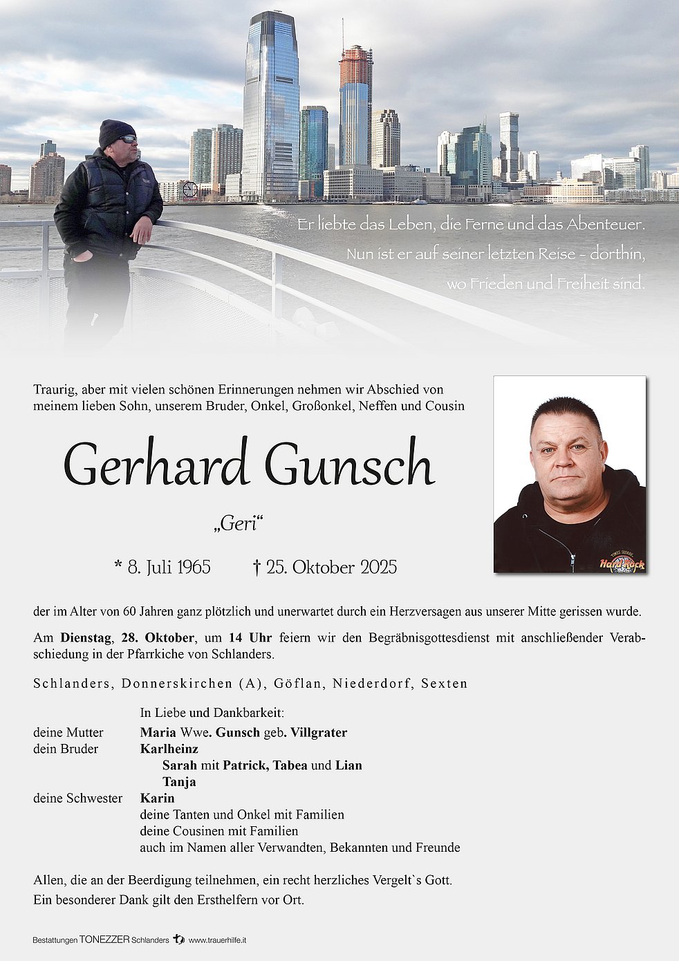 Am Dienstag, 28. Oktober, um 14 Uhr feiern wir den Begräbnisgottesdienst mit anschließender Verabschiedung in der Pfarrkiche von Schlanders.