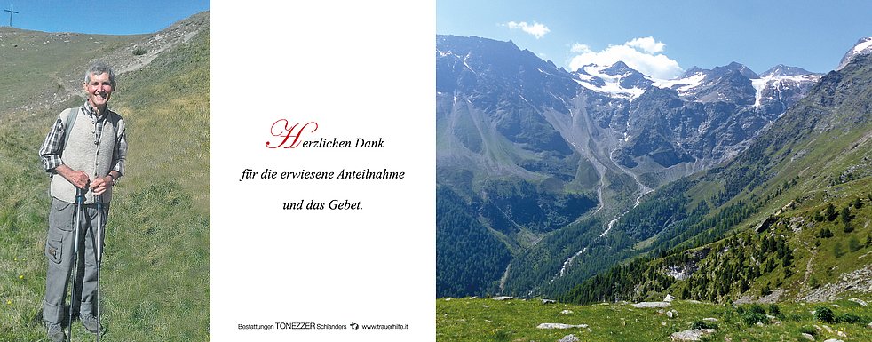 Ein besonderer Dank gilt der Abteilung Medizin III des Krankenhauses von Schlanders und der Abteilung Palliativ Martinsbrunn in Meran für die liebevolle und fürsorgliche Betreuung.