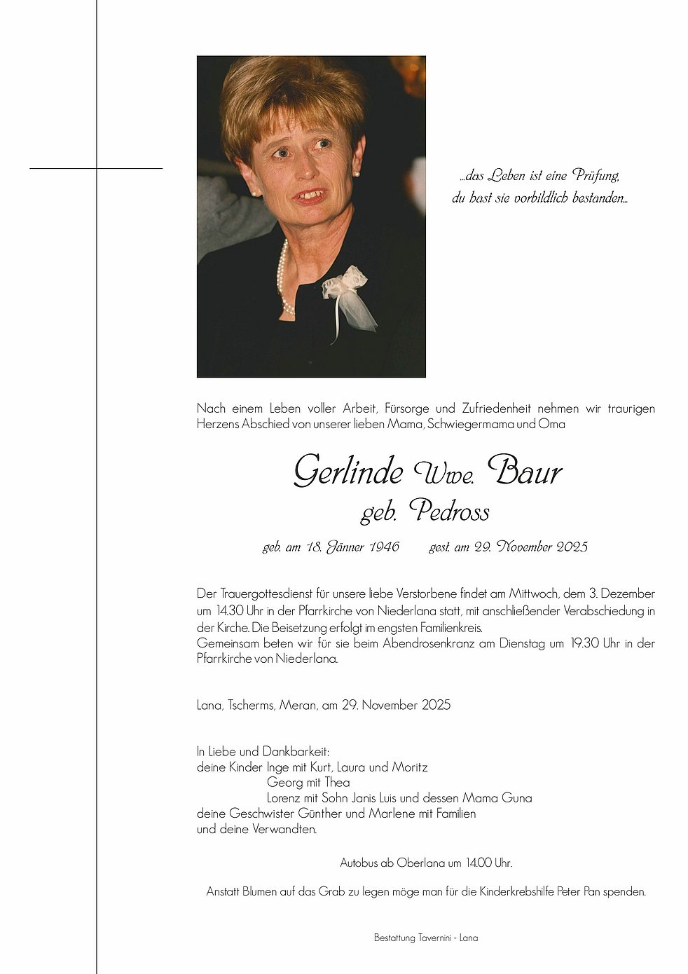 In lieben Gedenken Fam. Franz Pedross