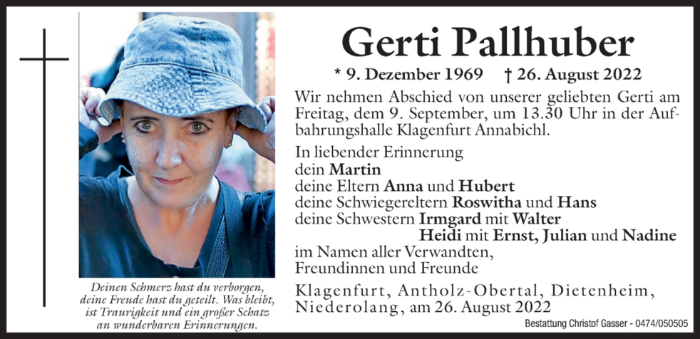 besteht am Freitag, dem 9. September 2022 ab 10 Uhr in der Aufbahrungshalle Klagenfurt Annabichl.