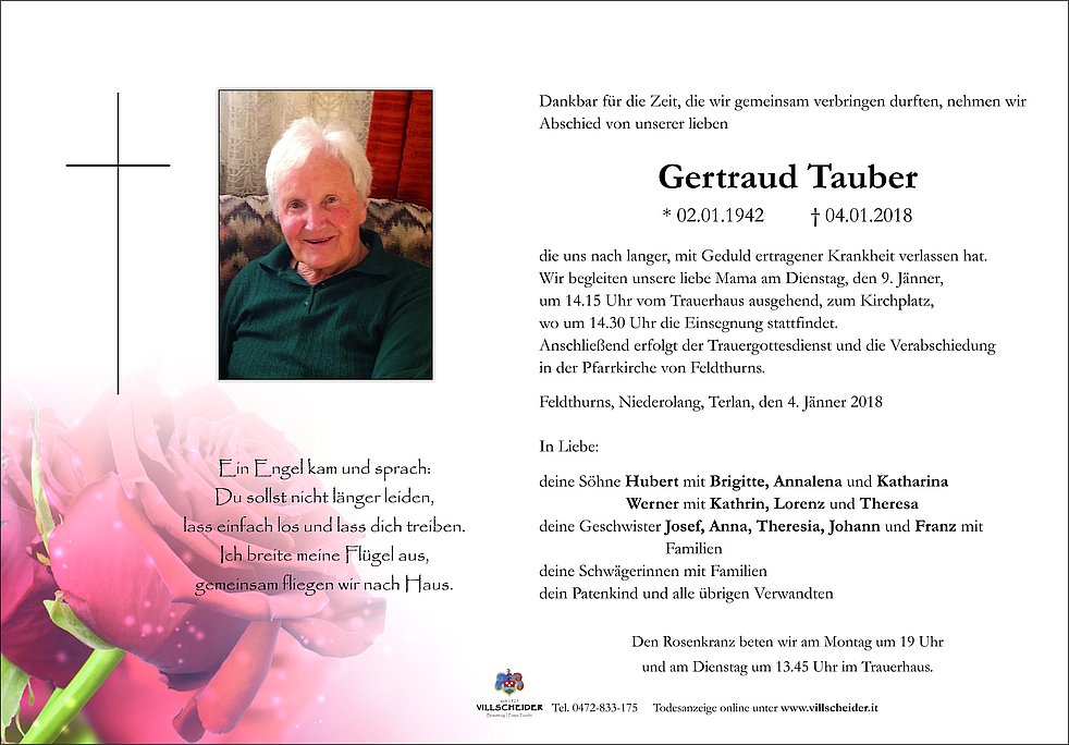 Wir begleiten unsere liebe Mama am Dienstag, den 9. Jänner,