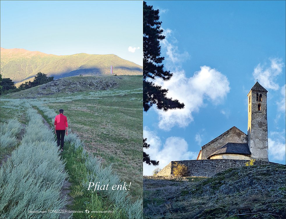 "Und immer sind da Spuren deines Lebens, Gedanken, Bilder und Augenblicke. Sie werden uns an dich erinnern, uns glücklich und traurig machen und dich nie vergessen lassen."