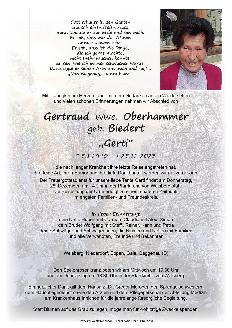 Gertraud Wwe. Oberhammer geb. Biedert