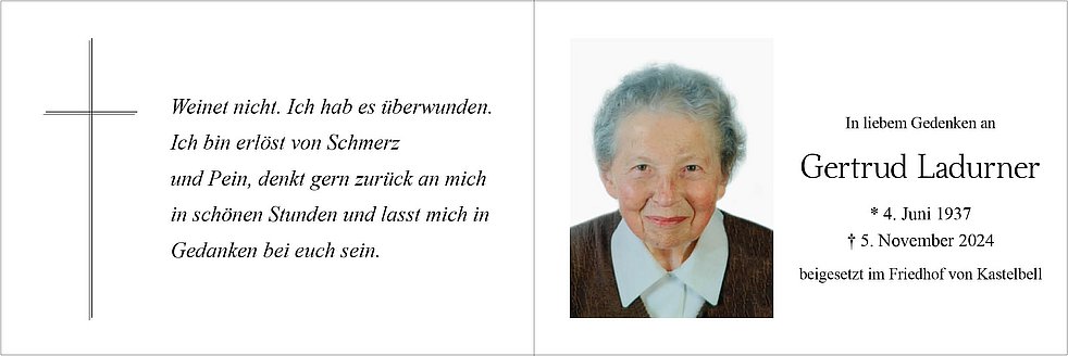 Begräbnisgottesdienst: 08.11. - 14:30 Uhr Pfarrkirche von Kastelbell/Marein
