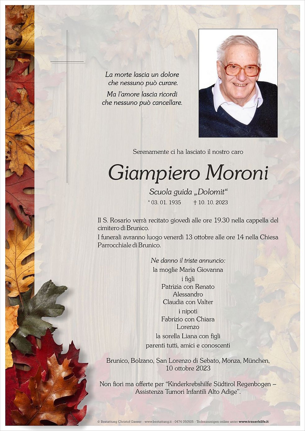 I funerali avranno luogo venerdì 13 ottobre alle ore 14 nella Chiesa Parrocchiale di Brunico.