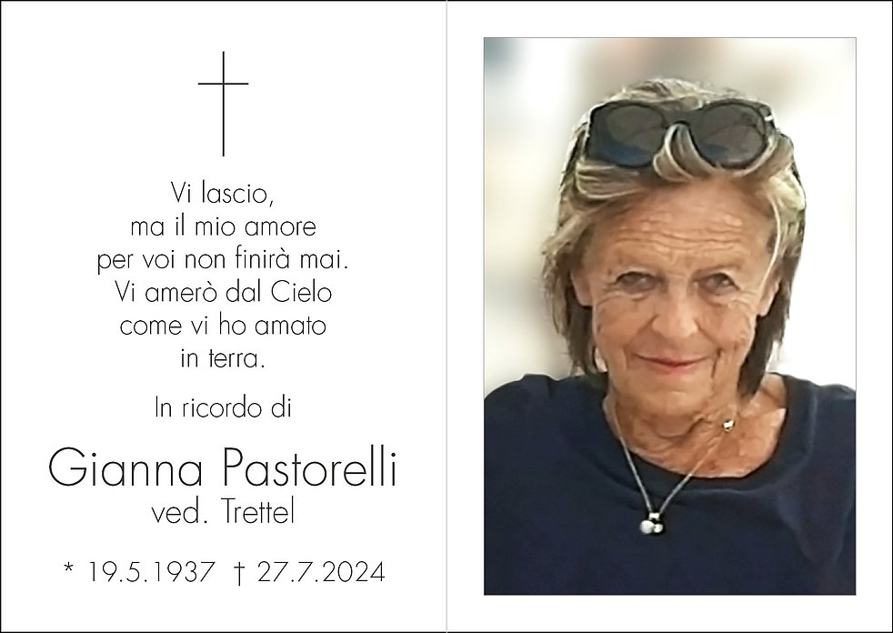La S. Messa in suffragio verrà celebrata martedì 30 luglio alle ore 10.30 nella chiesa di Cristo Re a Bolzano, Corso Italia, seguirà la cremazione.