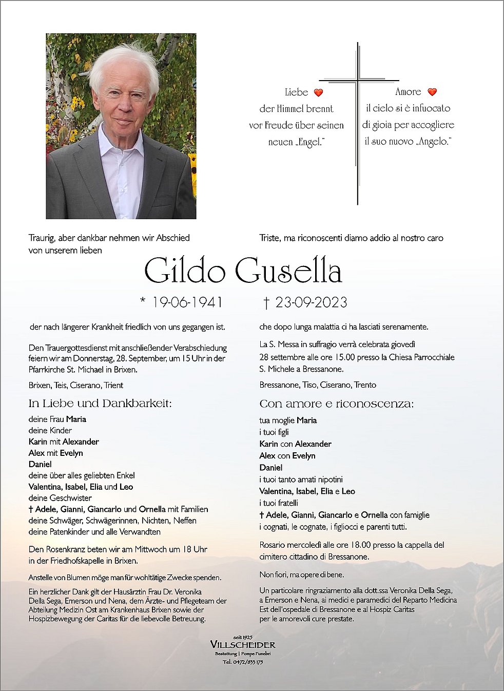 Begräbnisgottesdienst: 28.09. - 15:00 Uhr Brixen; Bressanone