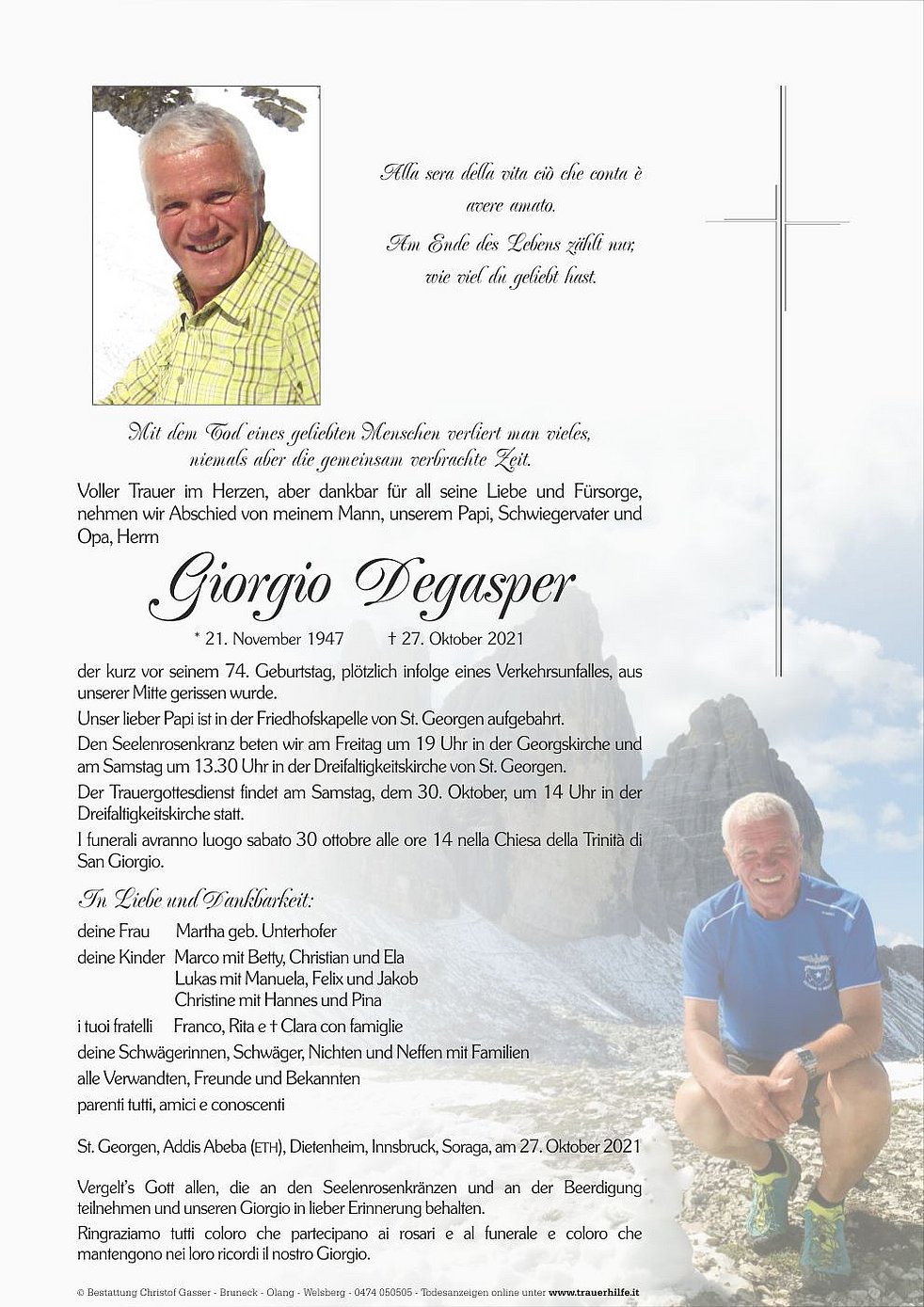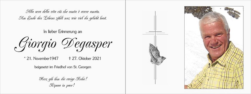 Vergelt’s Gott allen, die an den Seelenrosenkränzen und an der Beerdigung teilnehmen und unseren Giorgio in lieber Erinnerung behalten.
