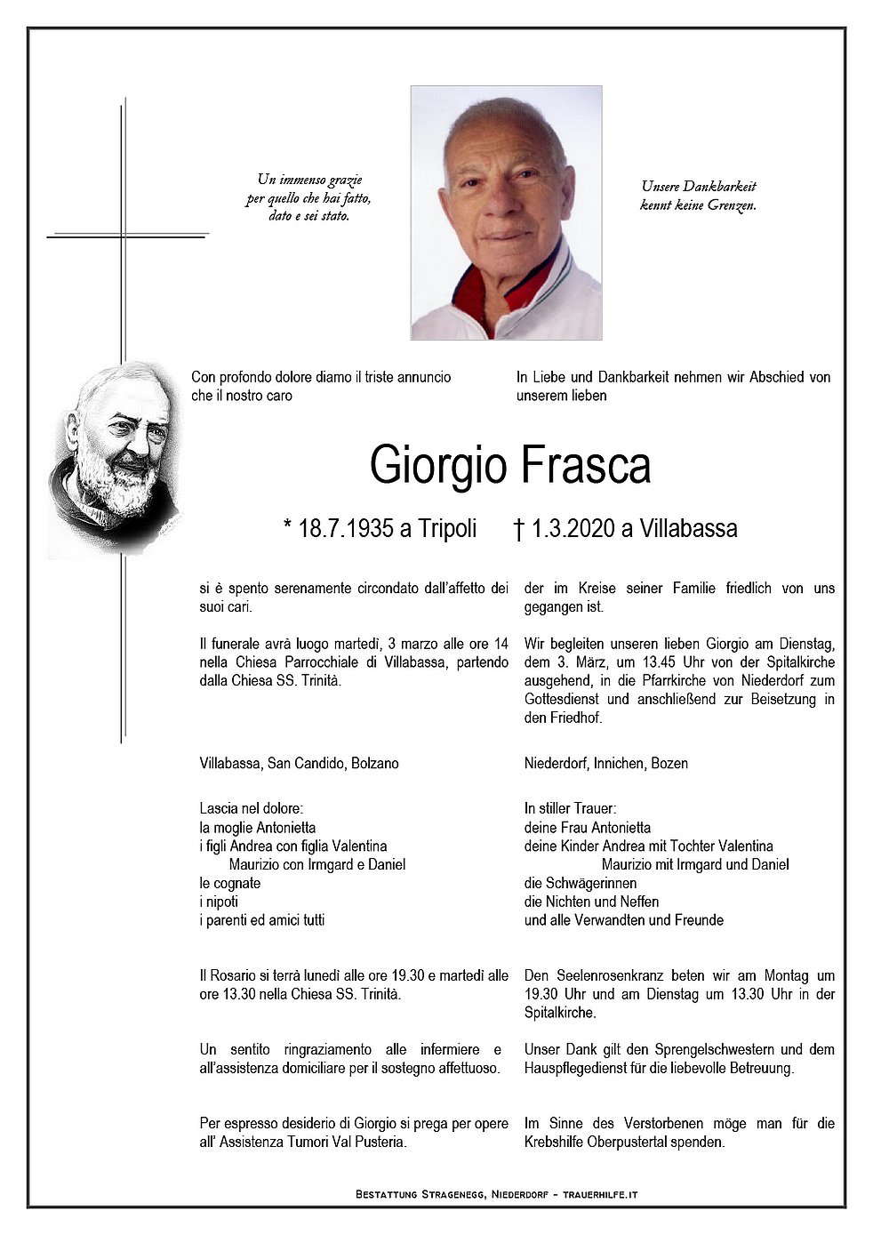 Wir begleiten unseren lieben Giorgio am Dienstag, dem 3. März, um 13.45 Uhr von der Spitalkirche ausgehend, in die Pfarrkirche von Niederdorf zum Gottesdienst und anschließend zur Beisetzung in den Friedhof.