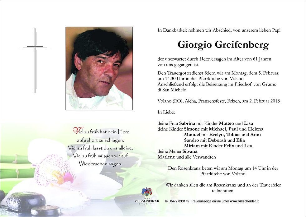 Den Trauergottesdienst feiern wir am Montag, dem 5. Februar,