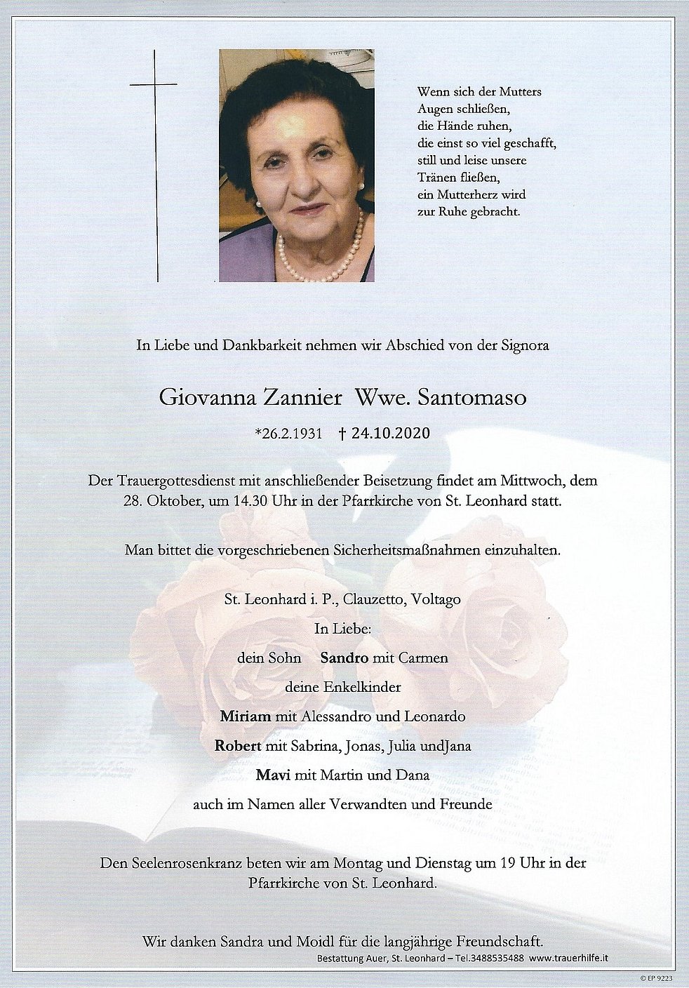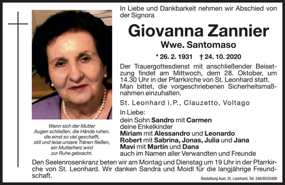 Der Trauergottesdienst mit anschließender Beisetzung findet am Mittwoch, dem 28. Oktober, um 14.30 Uhr in der Pfarrkirche von St. Leonhard statt.