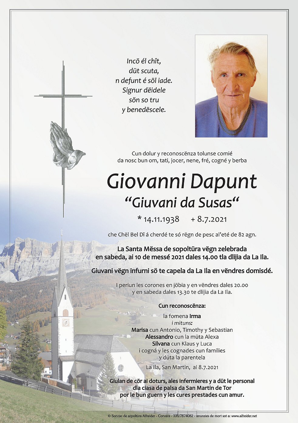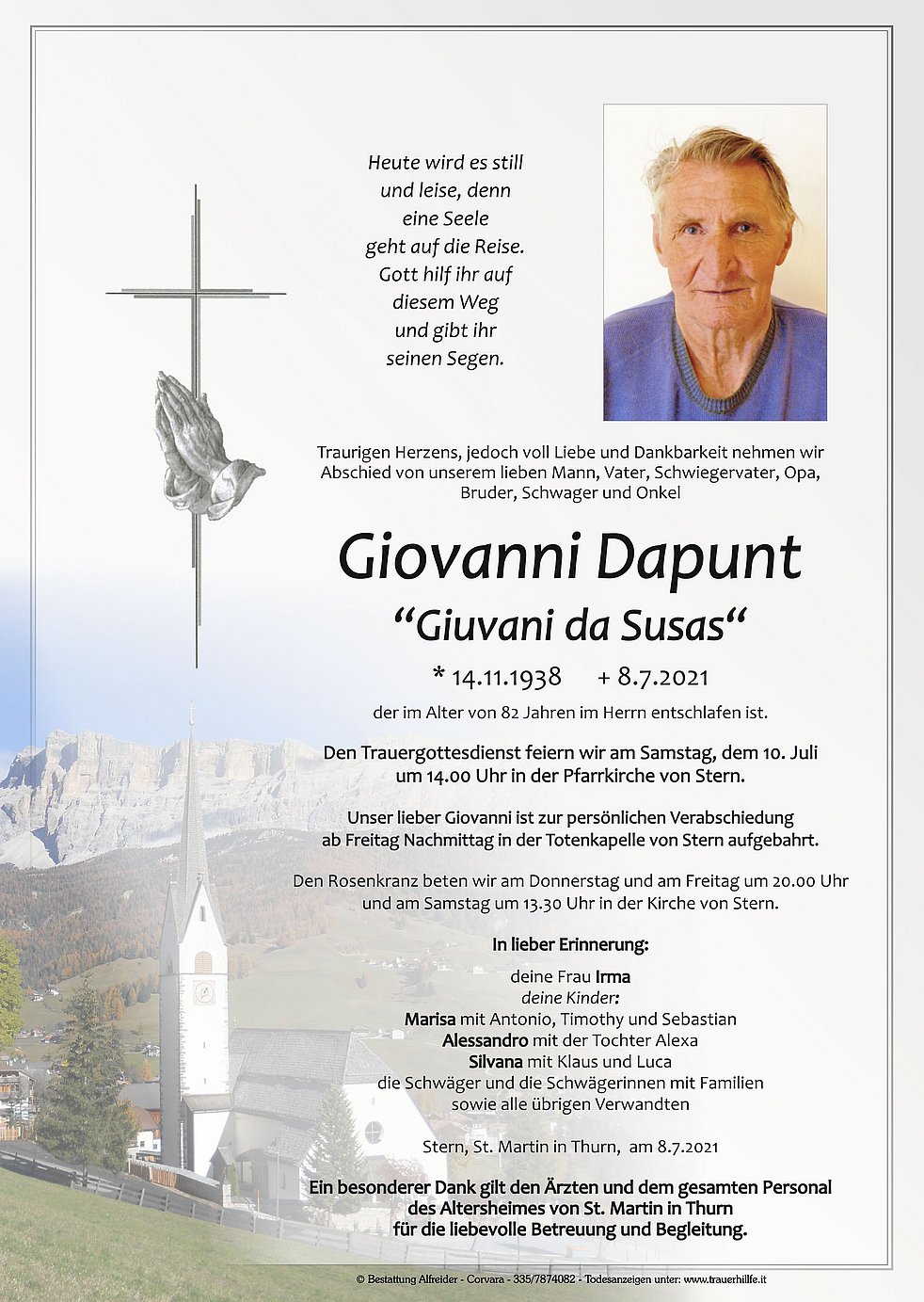 Unser lieber Giovanni ist zur persönlichen Verabschiedung ab Freitag Nachmittag in der Totenkapelle von Stern aufgebahrt.