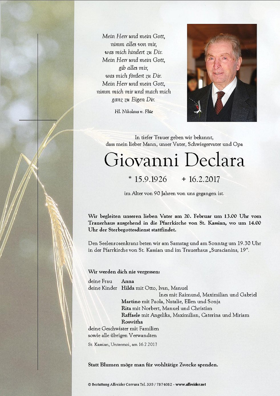 Wir begleiten unseren lieben Vater am 20. Februar um 13.00 Uhr vom Trauerhaus ausgehend in die Pfarrkirche von St. Kassian, wo um 14.00 Uhr der Sterbegottesdienst stattfindet.