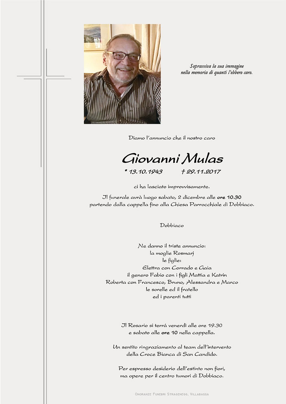 Die Beerdigung feiern wir am Samstag, dem 2. Dezember um 10.30 Uhr in Toblach.