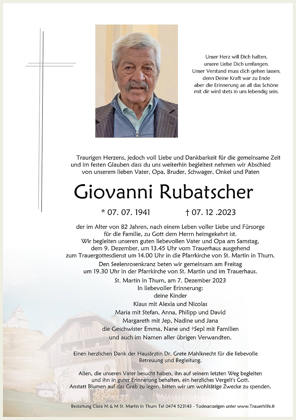 Begräbnisgottesdienst: 09.12. - 14:00 Uhr St. Martin in Thurn