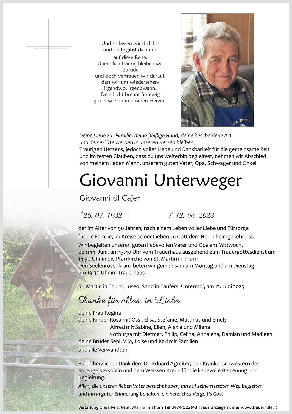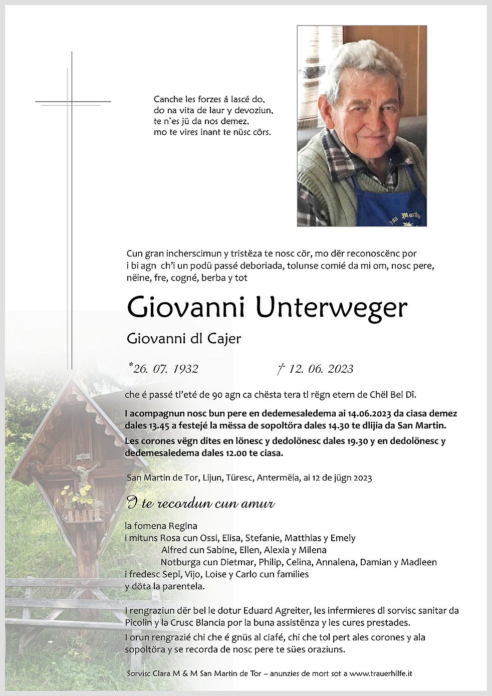 Wir begleiten unseren guten liebevollen Vater und Opa am Mittwoch, dem 14. Juni, um 13.40 Uhr vom Trauerhaus ausgehend zum Trauergottesdienst um 14.30 Uhr in die Pfarrkirche von St. Martin in Thurn.