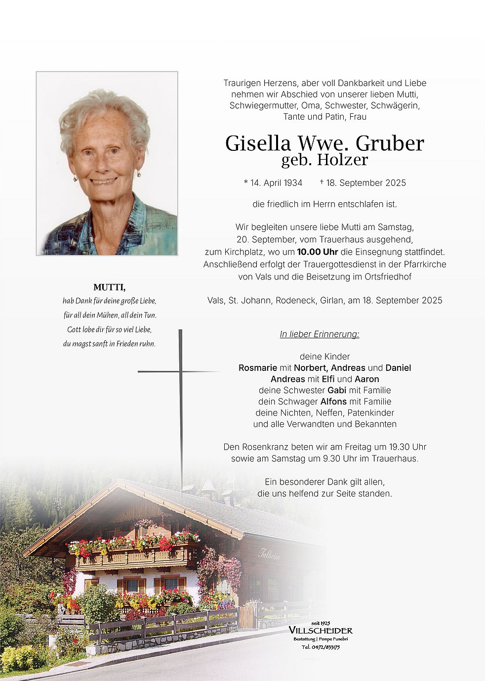 Trauerfeier: 20.09. - 10:00 Uhr Vals