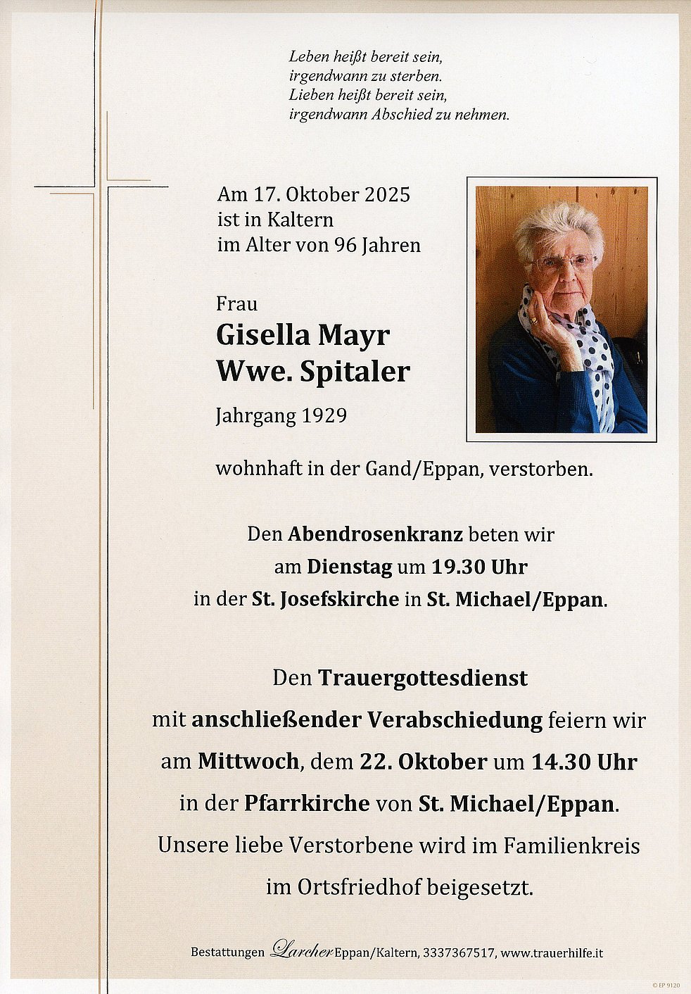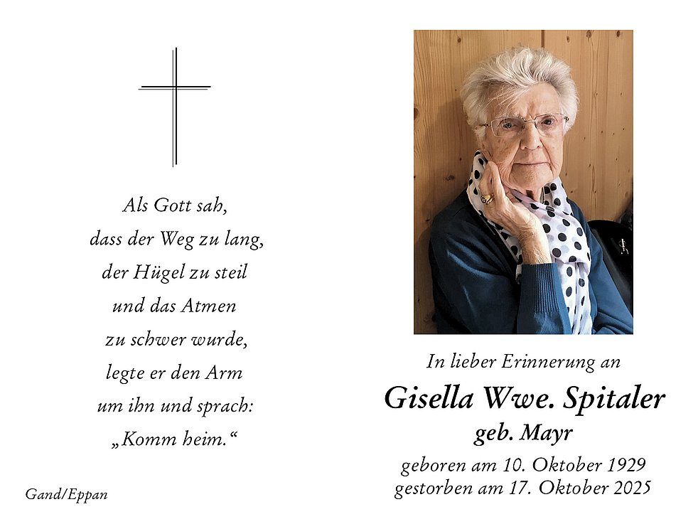Den Trauergottesdienst mit anschließender Verabschiedung feiern wir am Mittwoch, dem 22. Oktober um 14.30 Uhr in der Pfarrkirche von St. Michael/Eppan.