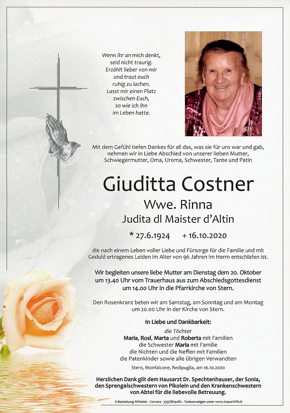 Mit dem Gefühl tiefen Dankes für all das, was sie für uns war und gab, nehmen wir in Liebe Abschied von unserer lieben Mutter, Schwiegermutter, Oma, Uroma, Schwester, Tante und Patin