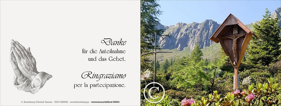 Ein ganz besonderer Dank gilt der Hausärztin Dr. Alea Innerbichler, dem gesamten Team vom Hauskrankenpflege-dienst Bruneck sowie der Pflegerin Marinela für die liebevolle Betreuung.