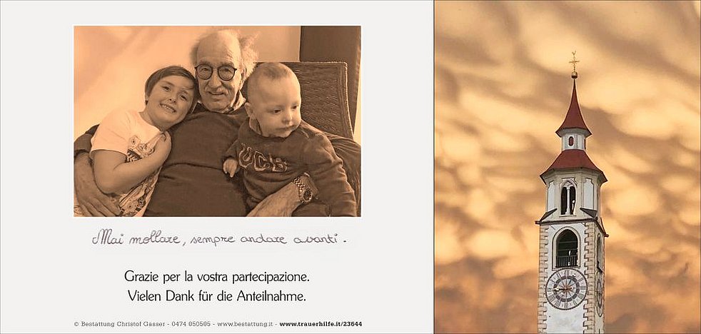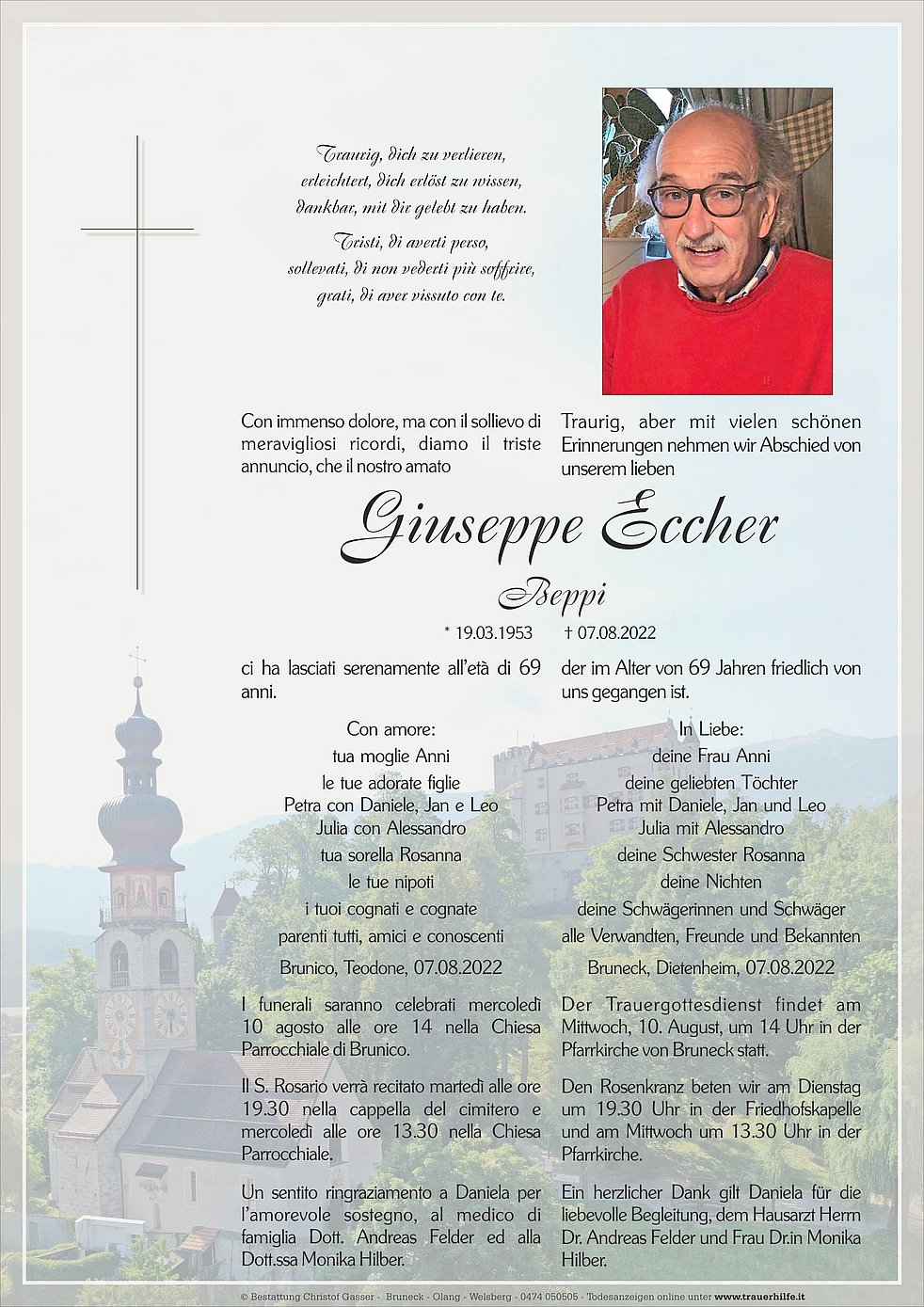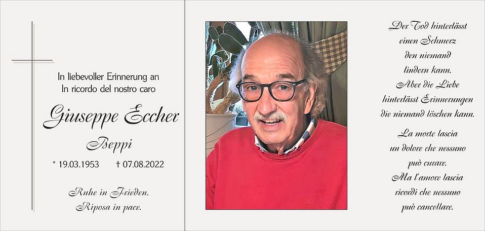 Der Trauergottesdienst findet am Mittwoch, 10. August, um 14 Uhr in der Pfarrkirche von Bruneck statt.