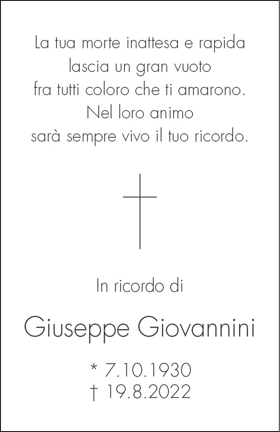 Con profondo dolore ne danno il triste annuncio la moglie Lina, i figli Walter, Ivonne con le rispettive famiglie e parenti tutti.