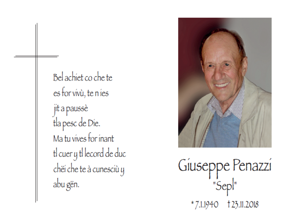 Cun l cuër n legrima, ma recunescënc di biei mumënc che on pudù passè deberieda y per dut chël che ël à fat per nëus, tulons cumià da nosc bon uem, pere, nëine y fra