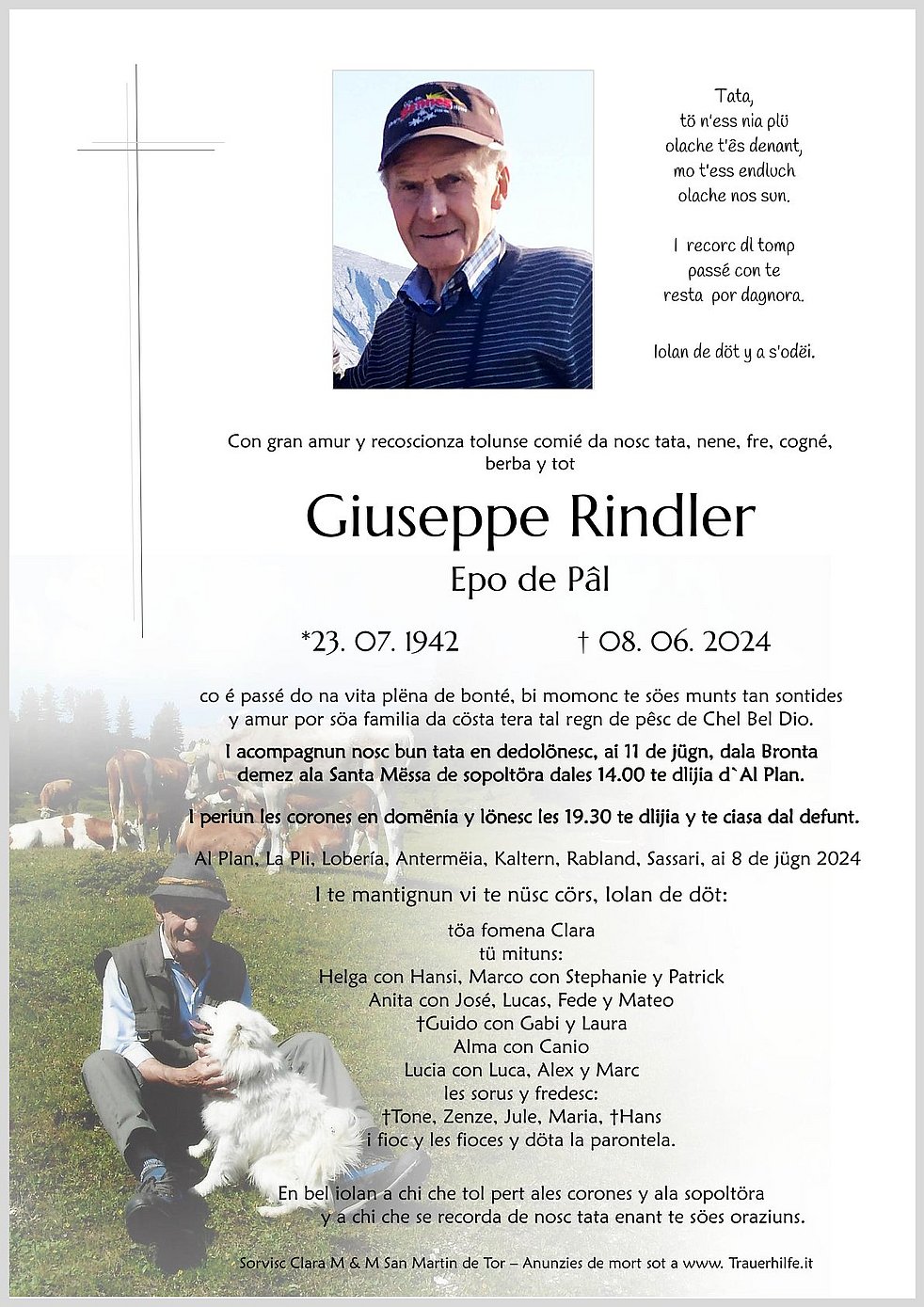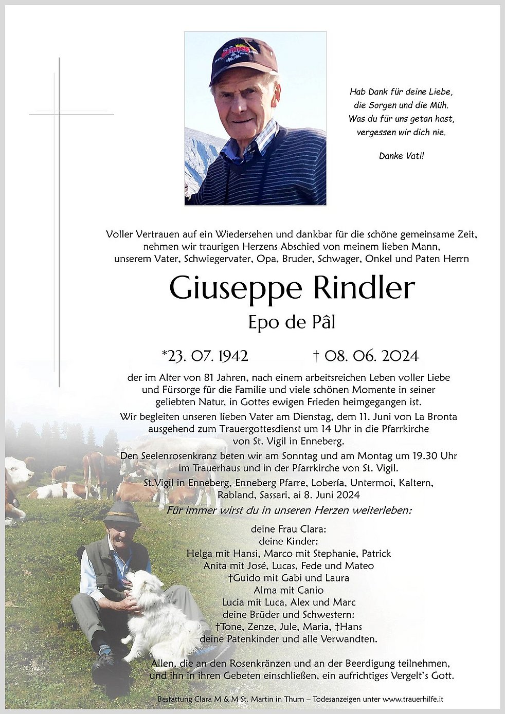 Begräbnisgottesdienst: 11.06. - 14:00 Uhr St.Vigil in Enneberg