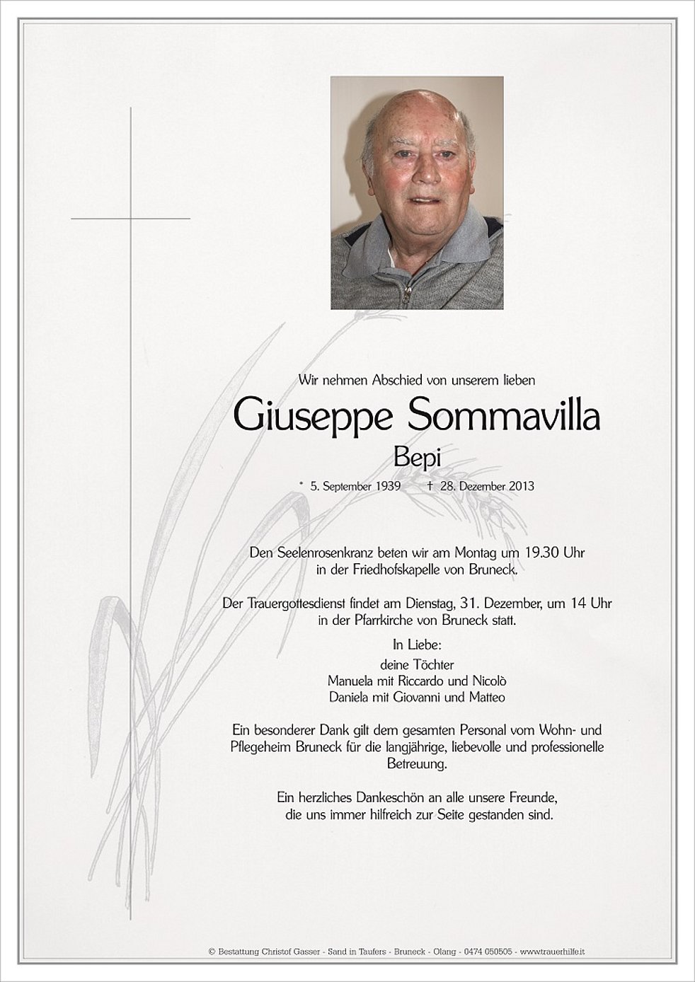 Ein besonderer Dank gilt dem gesamten Personal vom Wohn- und Pflegeheim Bruneck für die langjährige, liebevolle und professionelle Betreuung.