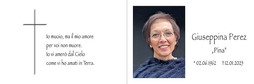 Den Trauergottesdienst mit anschließender Verabschiedung feiern wir am Dienstag, dem 14. Jänner, um 14.30 Uhr in der Pfarrkirche von St. Ulrich. Die Urne wird nach erfolgter Einäscherung im Kreise der Familie im Ortsfriedhof beigesetzt.