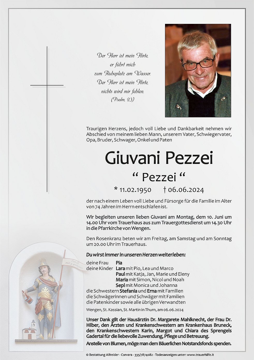 Begräbnisgottesdienst: 10.06. - 14:30 Uhr Pfarrkirche Wengen