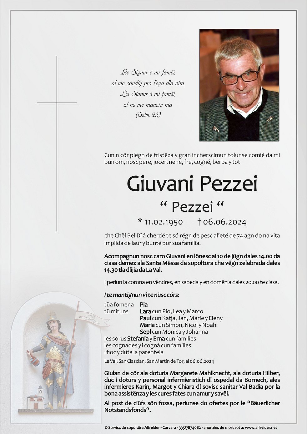 Palsa tla pesc, Giuvani. Ai familars mies condolianzes plü sintides.