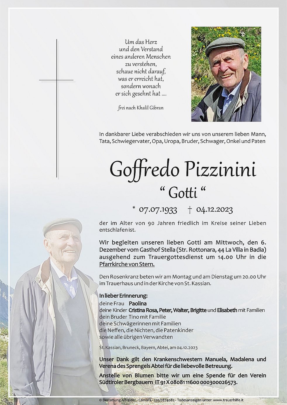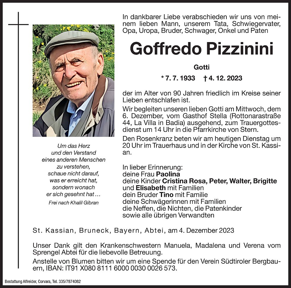 Liebe Familie Pizzinini,
